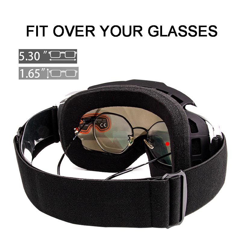 OTG (OVER-THE-GLASSES) DESIGN - Ski goggles that fit over glasses. The durable lens is scratch-resistant, ensuring long-lasting clarity and performance.