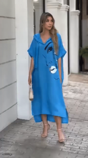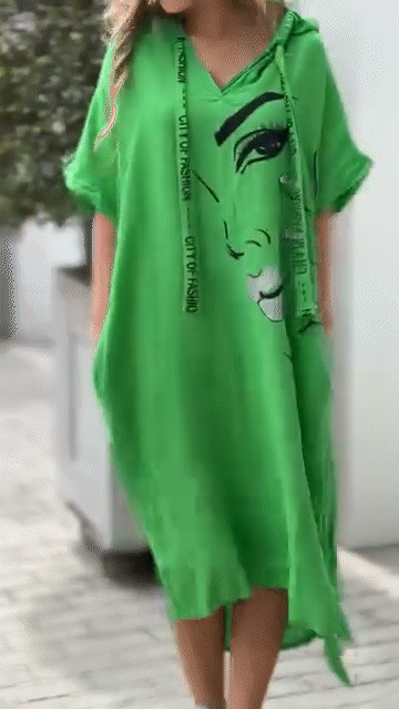 💐Upgrade your wardrobe with our stylish and comfortable Casual Loose Hoodie Dress featuring an eye-catching face print.