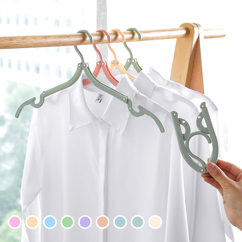 - COMPACT FOR EASY STORAGE --- These hangers can be folded to fit into small pockets of travel bags and luggage. With a slim, compact profile that helps you save precious space in your closet. Space saving and no trouble at all.