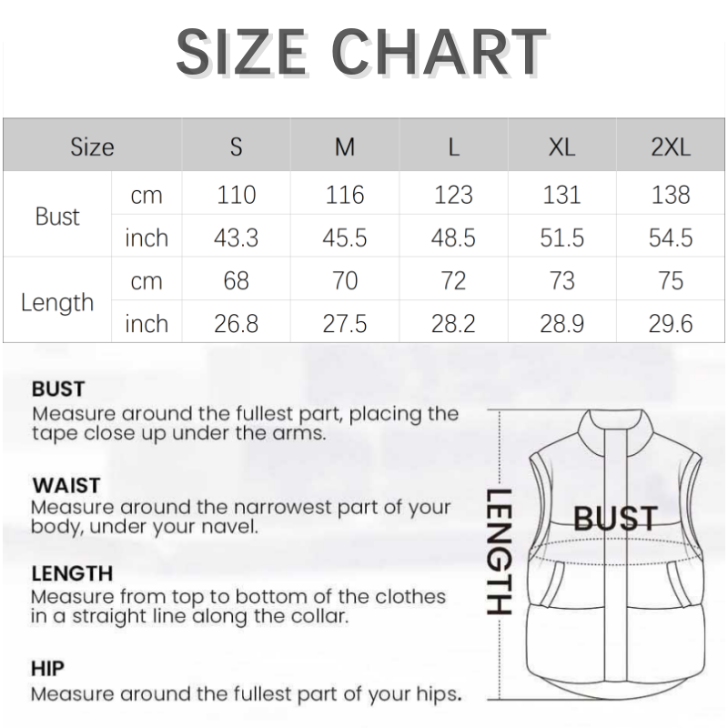 CONVENIENT POCKETS: Equipped with two spacious side pockets, this vest allows you to carry your essentials with ease. Store your phone, keys, or small items securely while keeping your hands warm. The pockets add practicality without compromising the sleek design, making it a functional addition to your wardrobe.