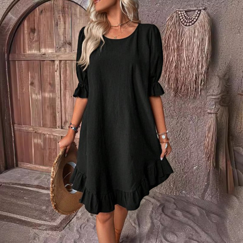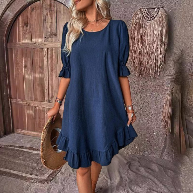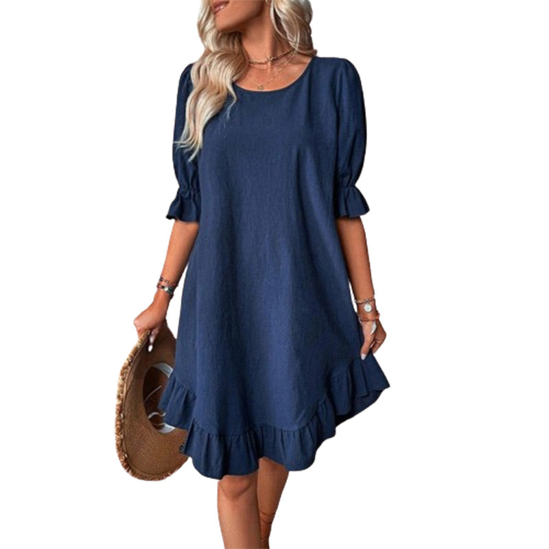 Suitable for all body shapes: this cotton linen dress with half sleeve and elegant skirt is designed to be worn by everyone, regardless of their body shape.