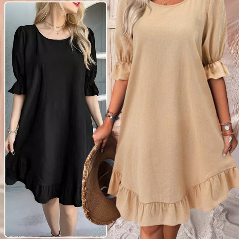 49% Off💥2024 New Plus Size Cotton linen dress with half sleeve and elegant skirt
