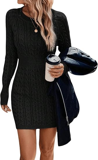 🖤🍂LOVE THIS Women's Plain Round Neck Cable Knit Bodycon Sweater Dress Elegant and Casual Design!!!