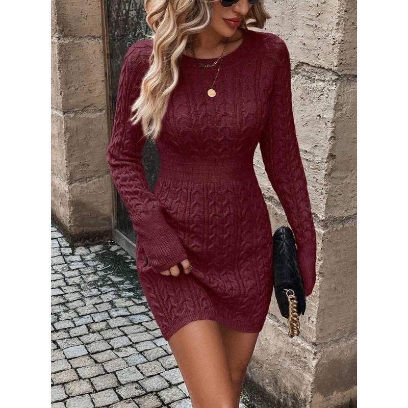 💃This women's sweater dress features a round neckline and plain pattern. It is a bodycon style with long sleeves, perfect for daily outdoor wear.