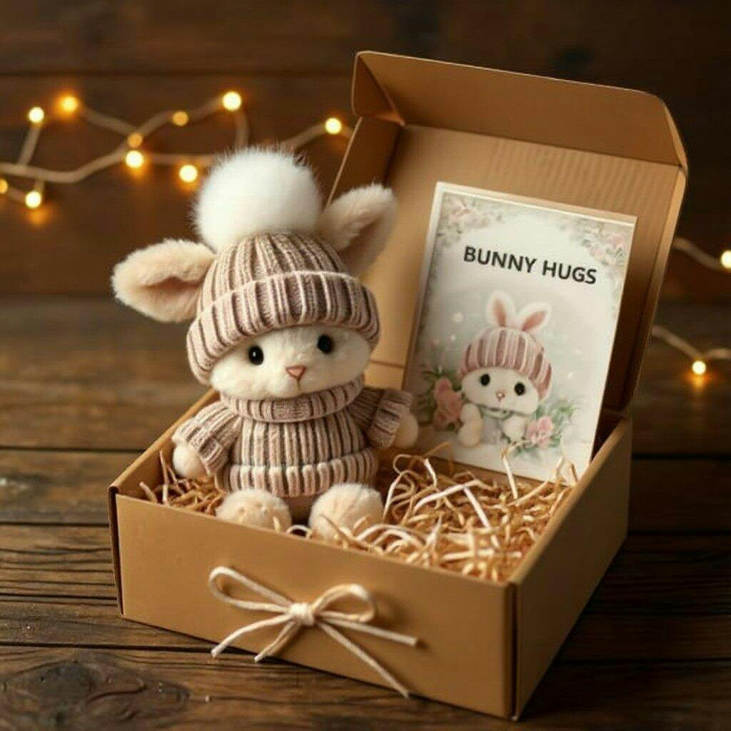 💛💛 Nestled in a charming gift box surrounded by soft shredded paper, this bunny offers a warm surprise every time it's opened. Whether you're sending a hug from afar or sharing a tender moment, this adorable companion carries with it profound love and comfort, bringing unforgettable brightness and joy to the recipient.