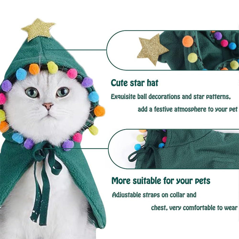 Christmas cat cloak with exquisite design, colorful pompoms at the edge of hat is eye catching and the golden star enhance your pet’s cuteness, dress your pet with the Christmas small dog cape and it will make them standout in the crowd.