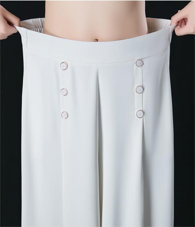 A pair of wide-leg pants solves the problem of elephant legs and various leg defects, making your body proportions look perfect! The cool polyester fabric is light, breathable, soft, and skin-friendly, bringing you ultimate comfort and coolness.