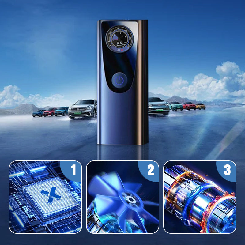 HIGH-PRESSURE INFLATOR PUMP: Equipped with an advanced motor, this pump delivers rapid inflation, ensuring quick and efficient tire inflation.