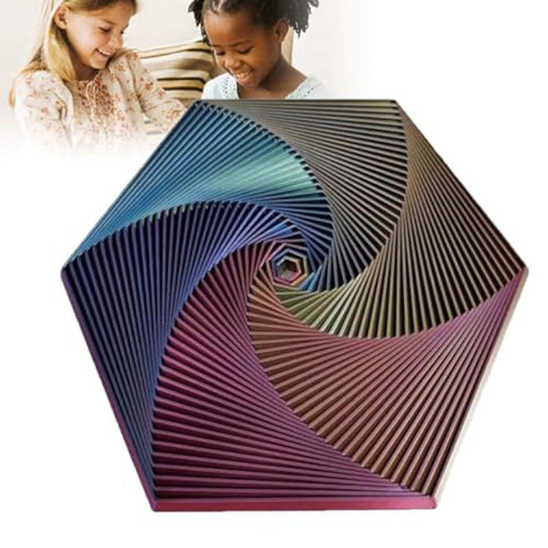 šćSpiral Gearć Our Fractal Hexagon is a one-of-a-kind fidget toy featuring a hexagonal shape and mesmerizing fractal patterns. Designed to provide endless entertainment for children and adults, it offers a visually stimulating experience that helps relieve anxiety and stress.Geometric shape, bright colors, and diverse gameplay