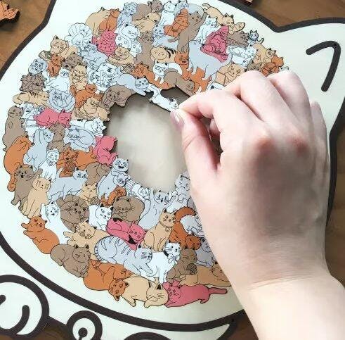 - Name:Ā 135-Piece Morandi-Colored Cat Shaped Wooden Jigsaw Puzzle