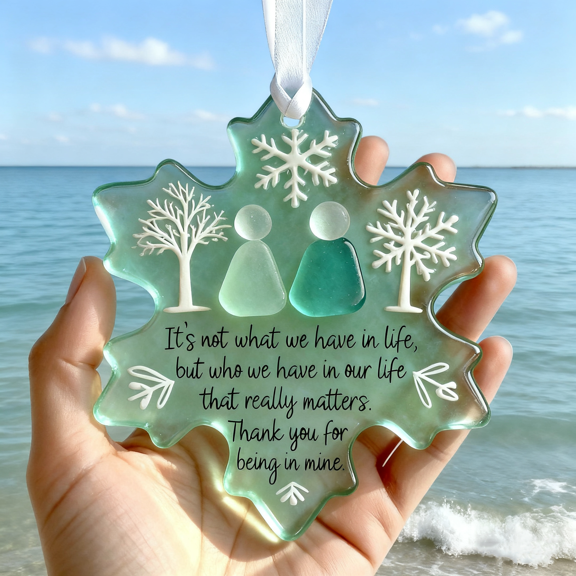 🎉Celebrate the beauty of connection with our Snowflake Sea Glass Ornament.Handcrafted with care, each ornament is adorned with genuine sea glass, making it as rare and precious as the friendships it honors.💫