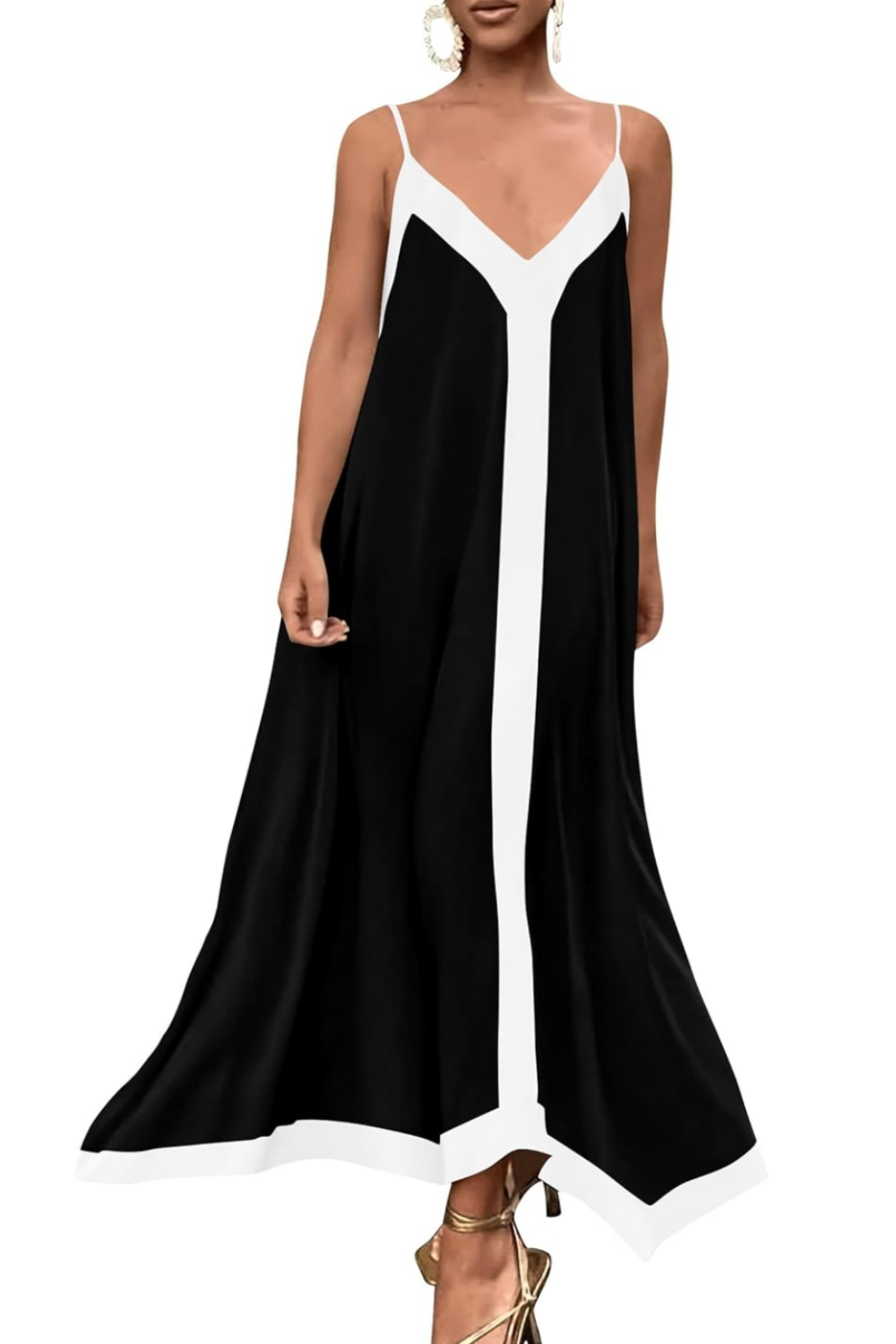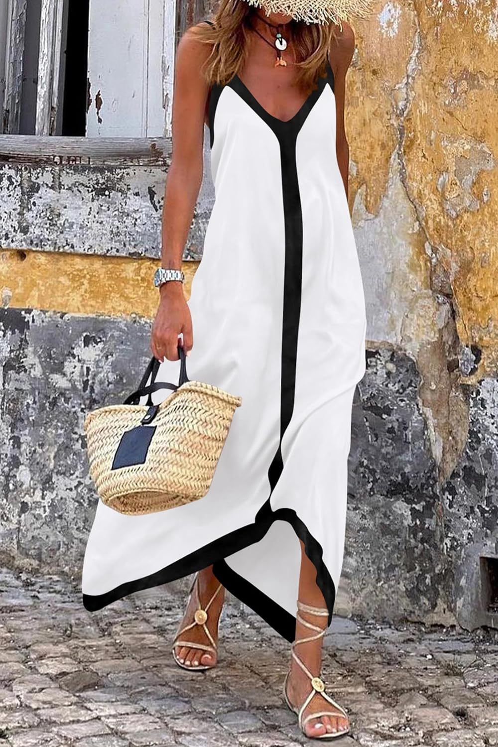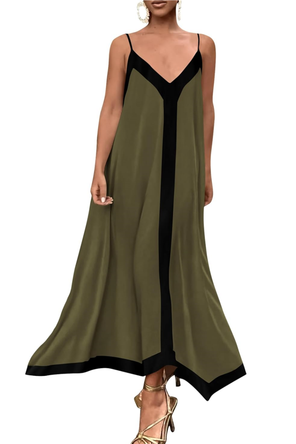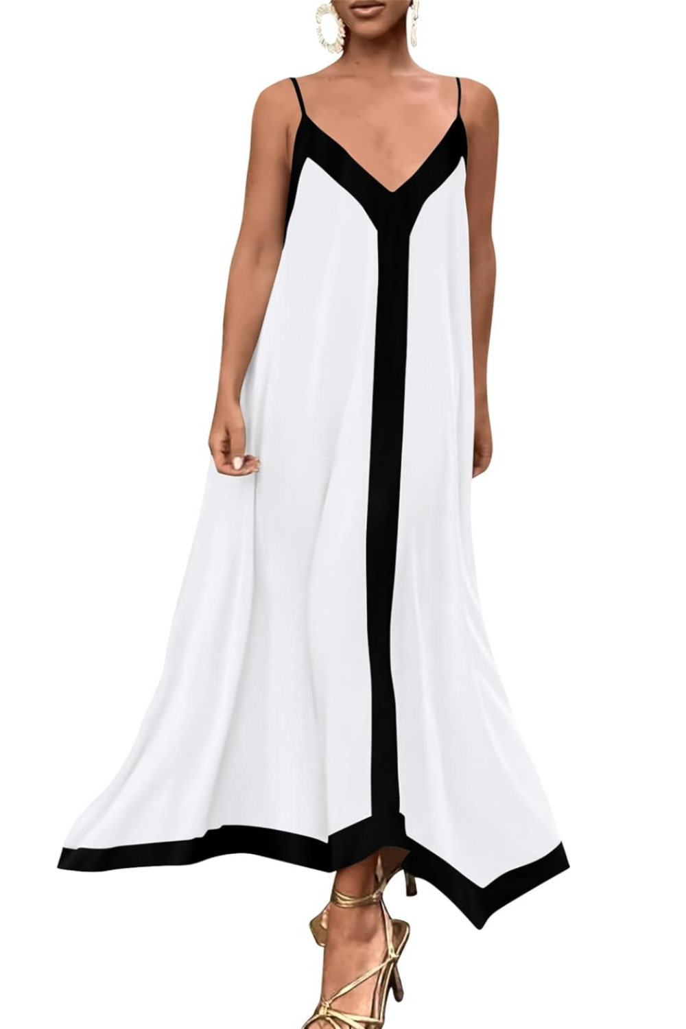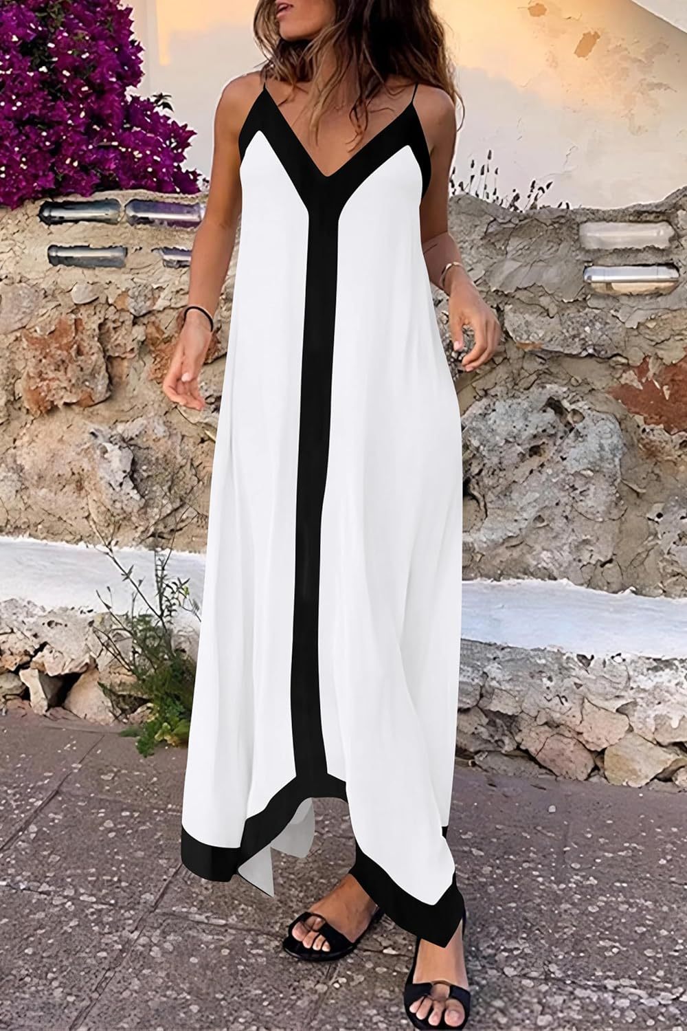 Package Includes: 1×Summer V-neck Color Blocked Spaghetti Dress