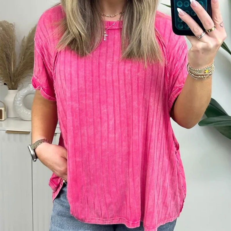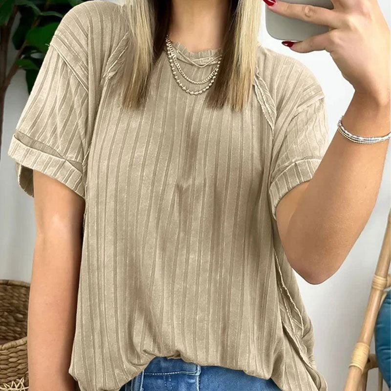 Upgrade your casual wardrobe with our Women's Trendy Striped Round Neck Short Sleeve T-Shirt.