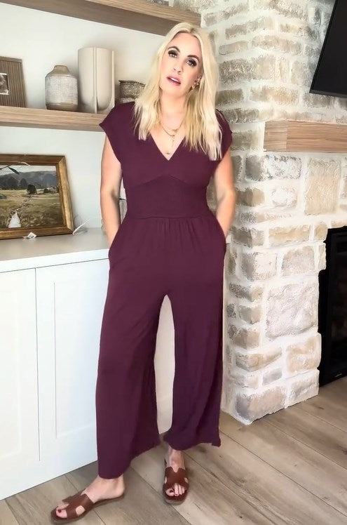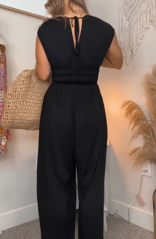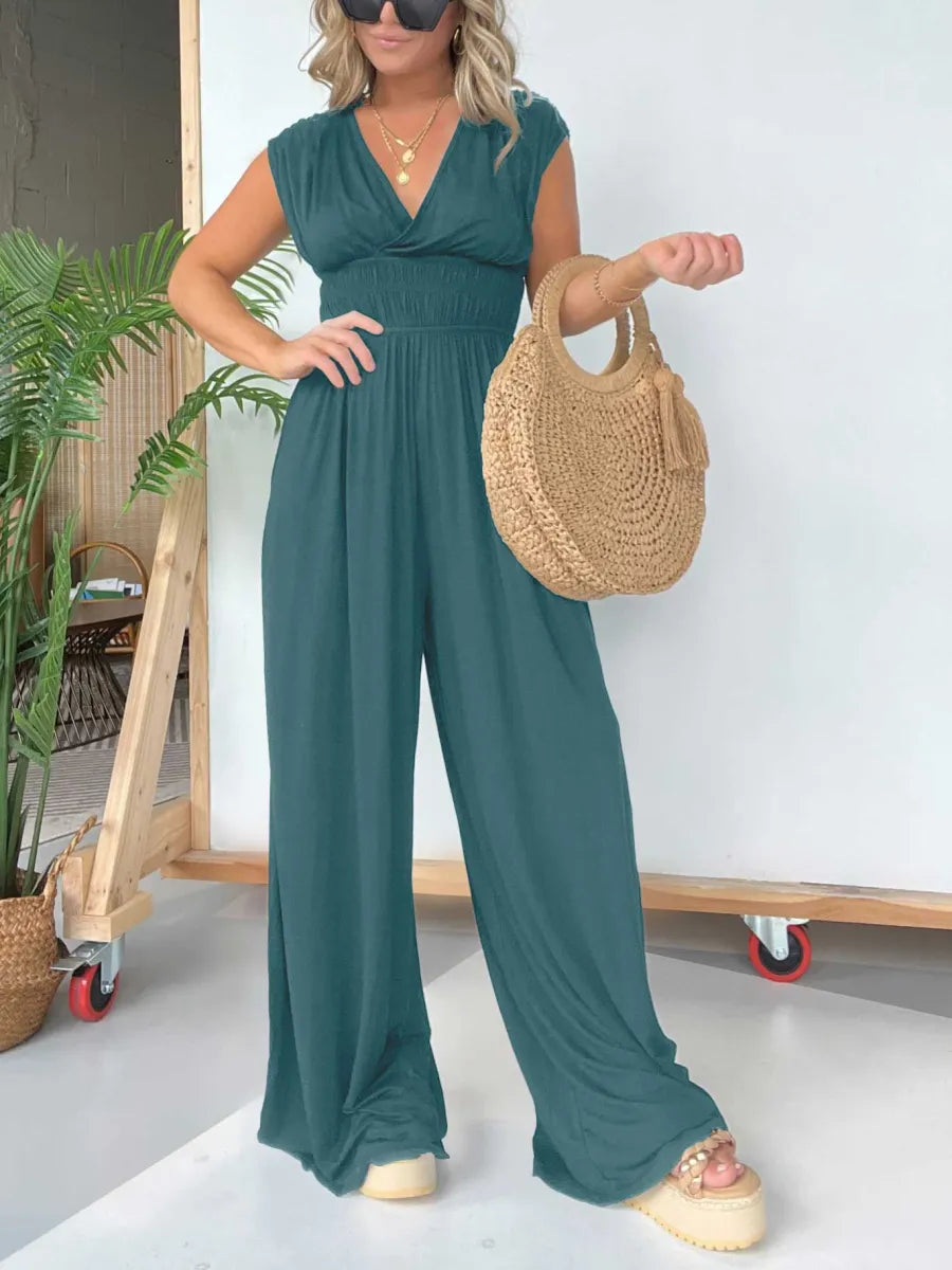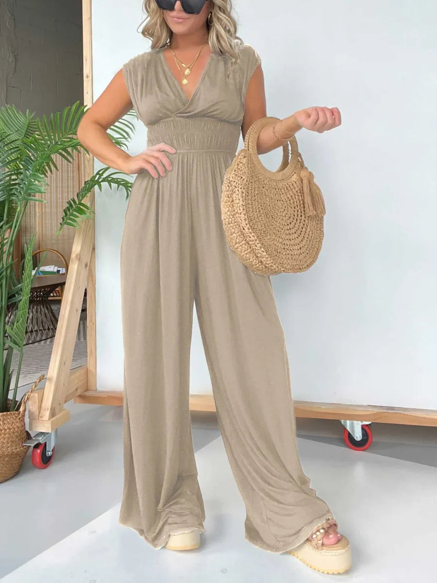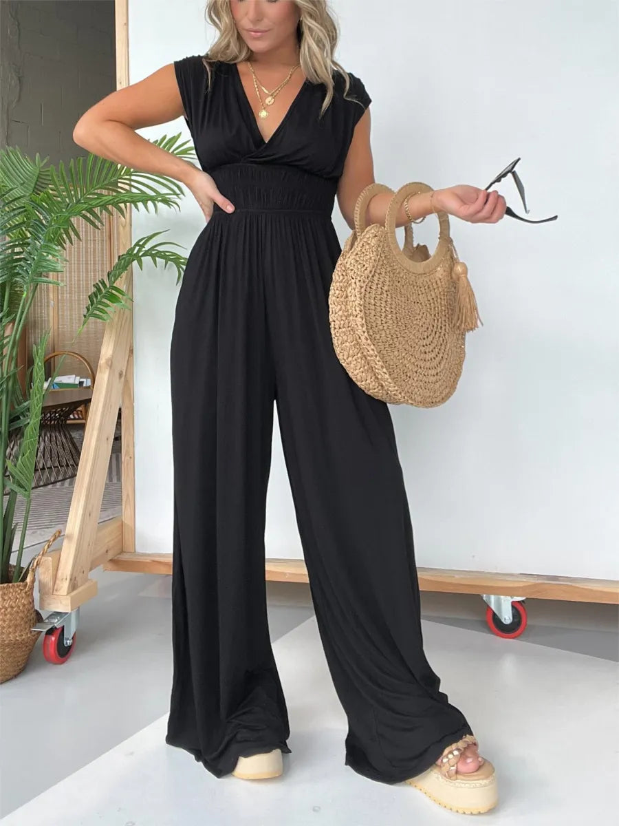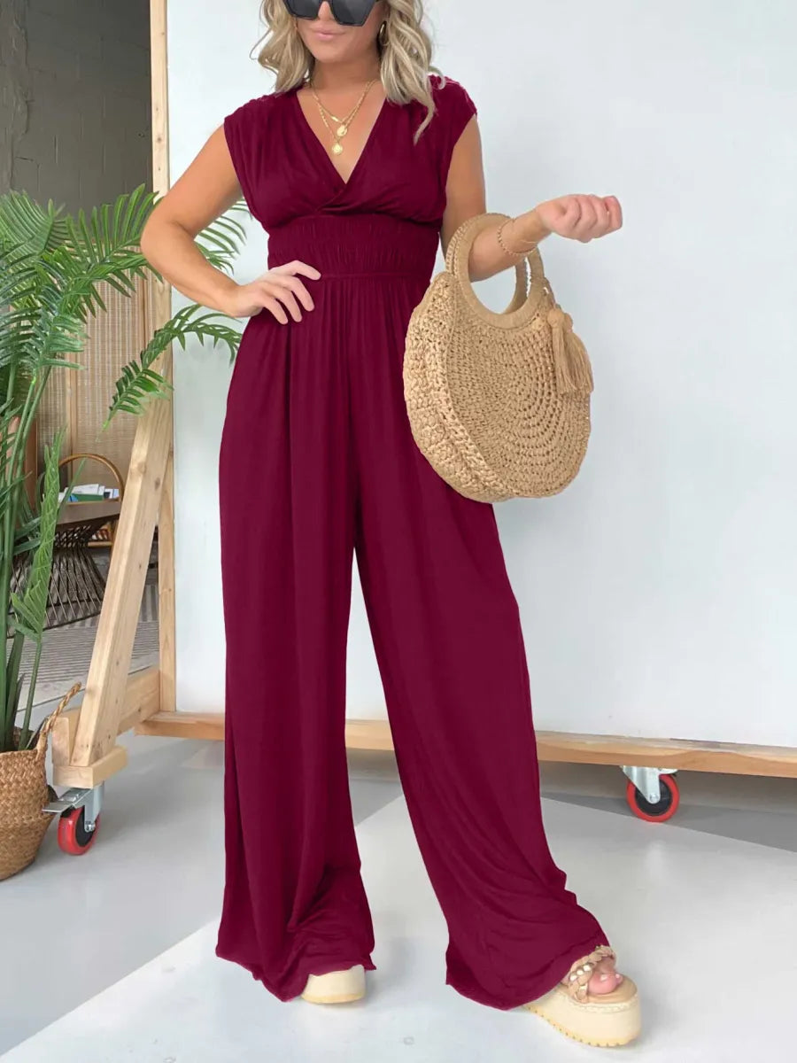 🔥V-Neckline Wide Leg Jumpsuit with Adjustable Back Tie