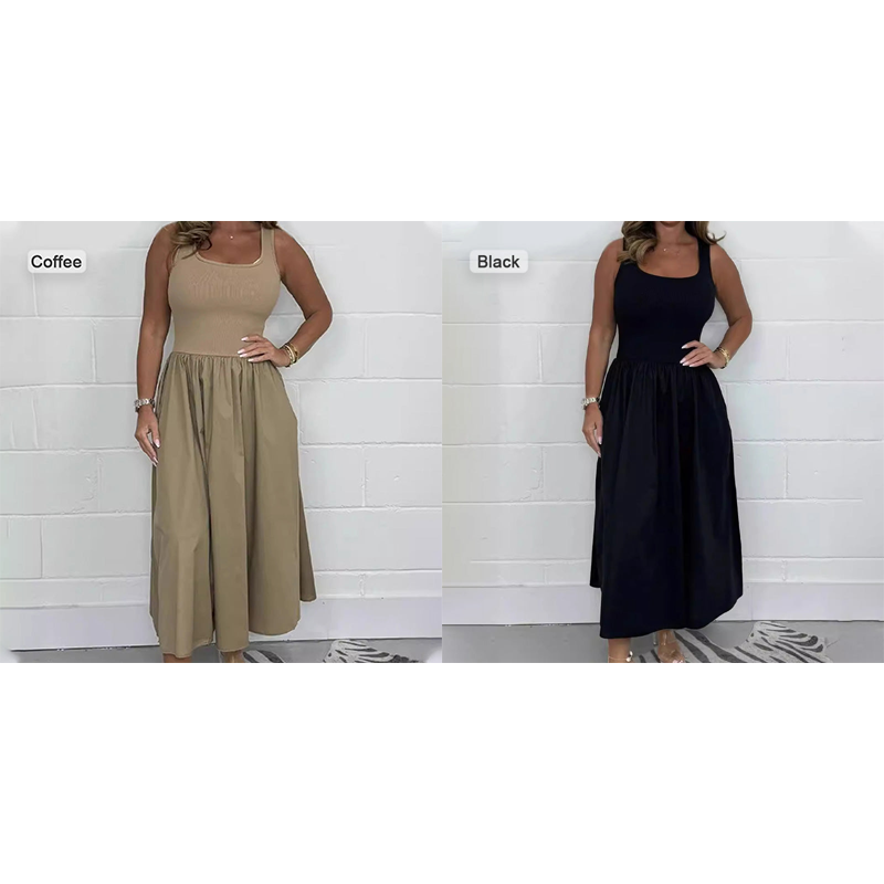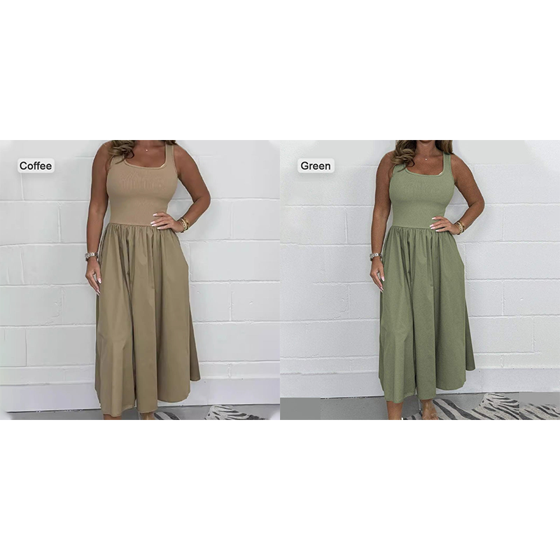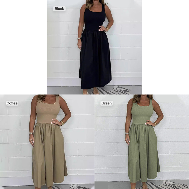 🎉Get ready to look stylish with our solid-color sleeveless dress!
