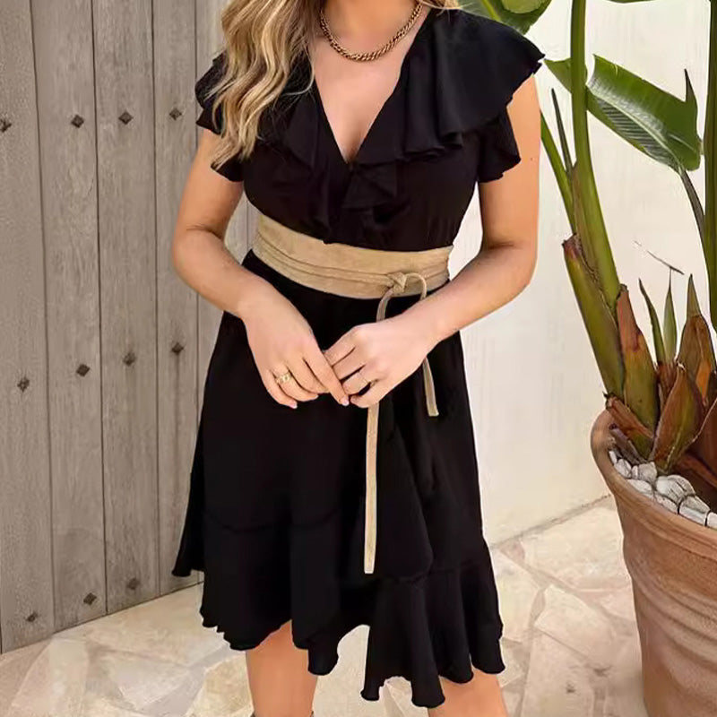💖LAST DAY SALE 50% OFF💖Women's Elegant Waist Tie V-Neck Ruffle Dress