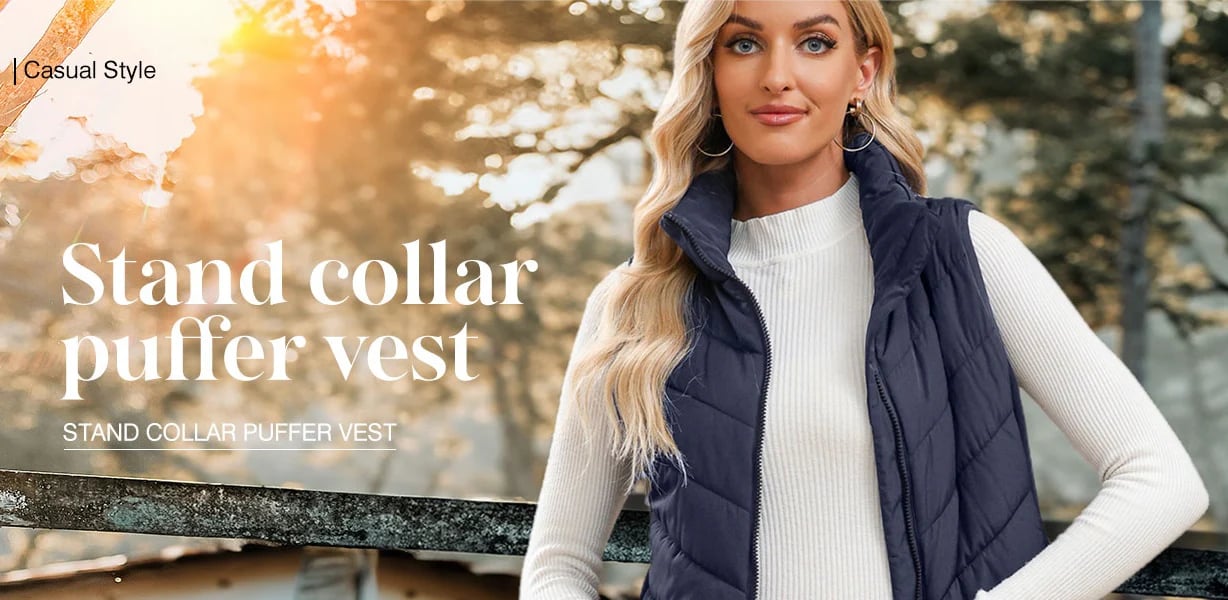 ELEGANT STAND COLLAR DESIGN: The stand collar provides added warmth for your neck while giving the vest a sleek and chic appearance, ideal for both casual and semi-formal looks.