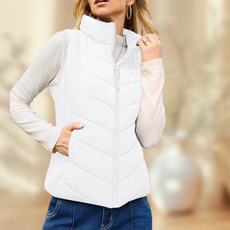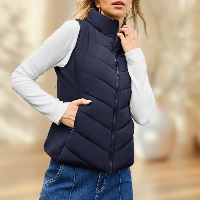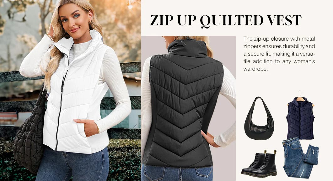 This Sleeveless quilted vest provides both warmth and a sleek, stylish look.