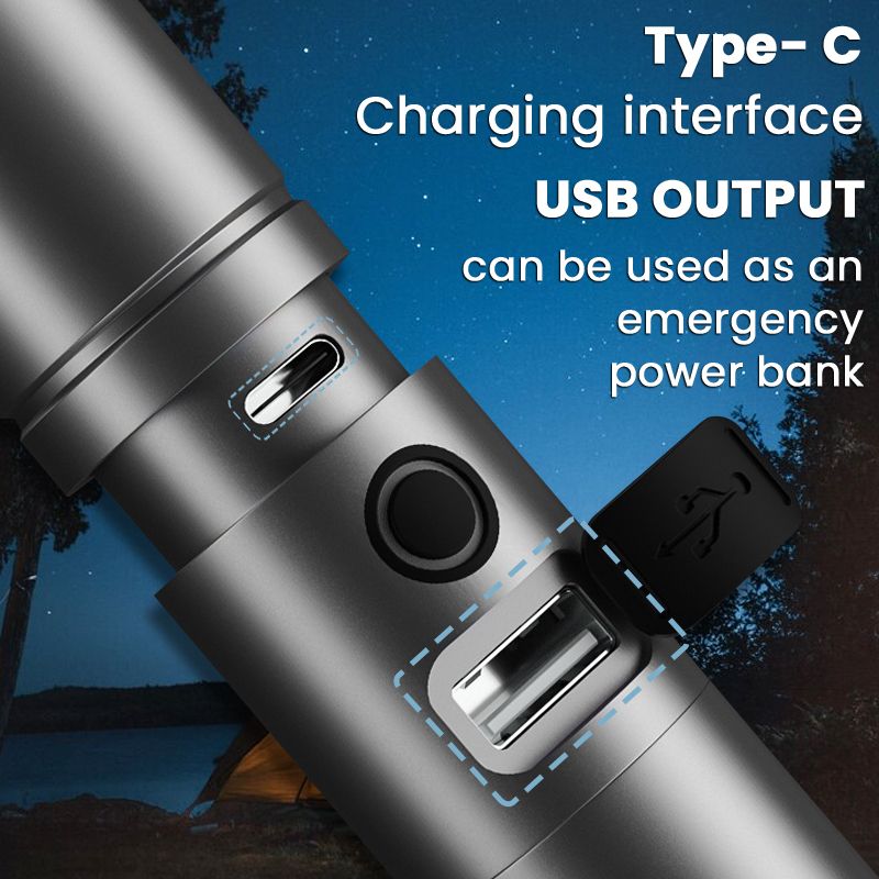 TYPE-C CHARGING: Fast and convenient charging via a Type-C cord, ensuring your flashlight is always ready when you need it.